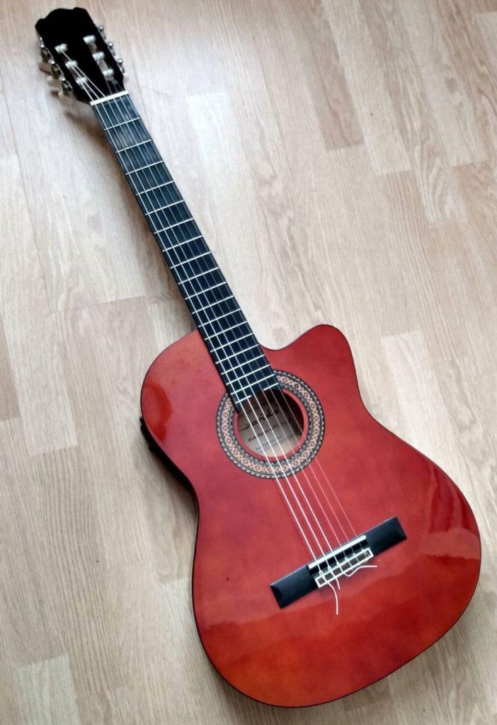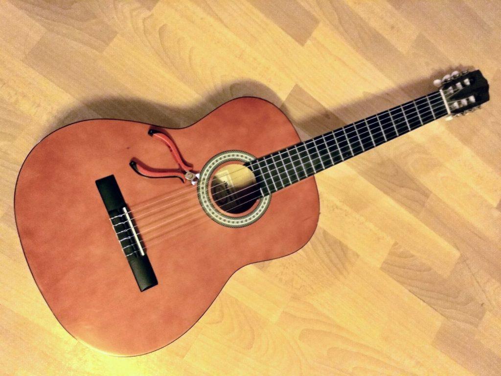 De gitaar die kapot was heb ik jaren geleden gekocht voor de kinderen om daarop te leren spelen. Inmiddels staat de gitaar al weer jaren bij dochter Mirjam thuis, die ‘m met enige regelmaat gebruikt.