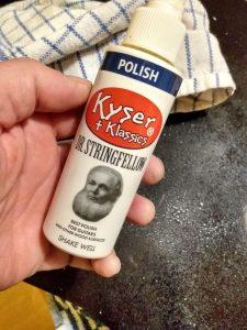 Voordat de snaren er weer op gingen de gitaar een uitgebreide poetsbeurt gegeven, de toets gereinigd en nieuwe snaren er op gezet. De gitaar ziet er weer uit als nieuw, blijft keurig op stemming en speelt weer als een zonnetje!