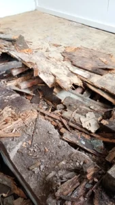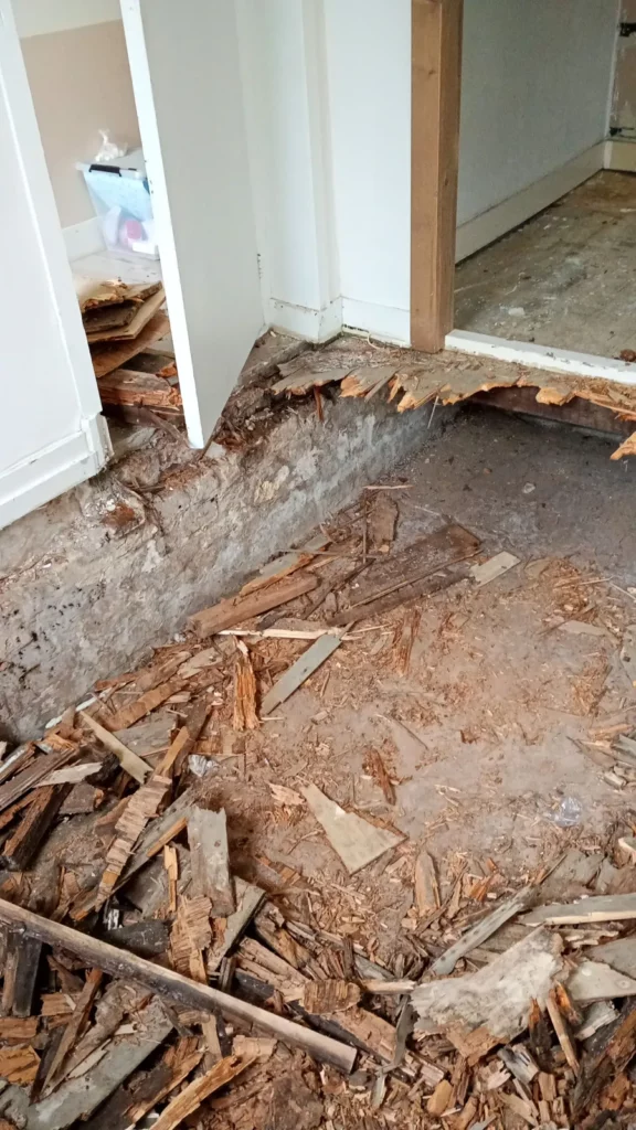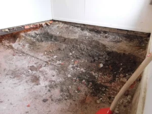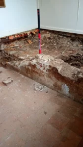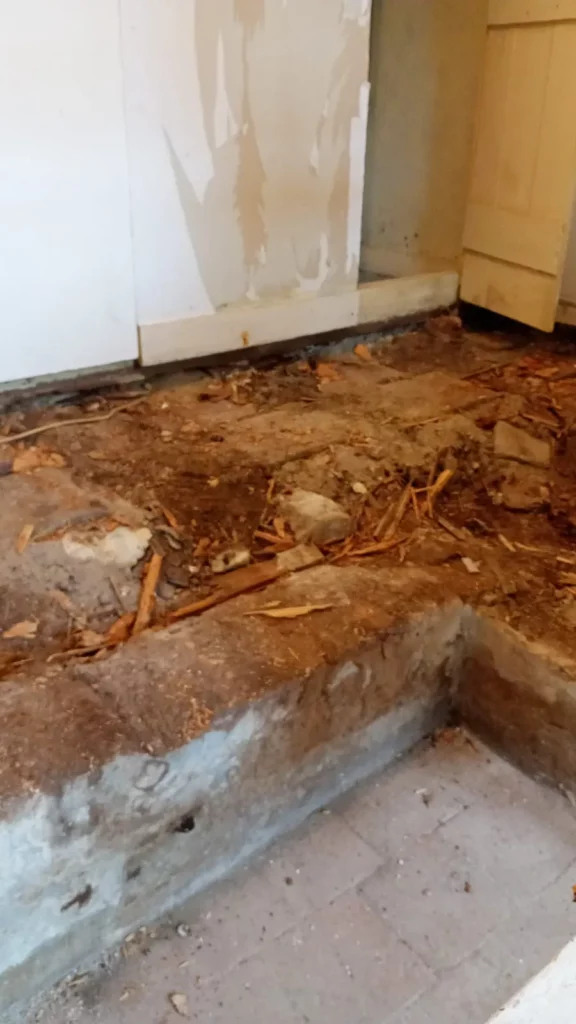 Recent hebben we een deel van de woning van een nieuwe vloer van schuimbeton voorzien omdat de houten vloer daar helemaal verrot was en aan het doorzakken was.